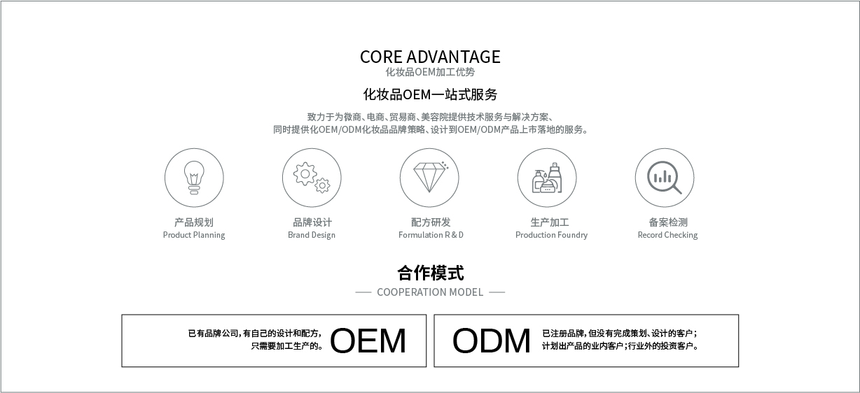 公司始創(chuàng)建于2012年,經(jīng)過八年的健康發(fā)展,已經(jīng)成為可以從事妝字號、消字號、械字號等系列產(chǎn)品生產(chǎn)加工的大型企業(yè)。企業(yè)坐落在美麗的廣州白云區(qū)鐘樓潭鎮(zhèn),擁有面積超過15,000平方米的生產(chǎn)廠房。廠房寬敞明亮,設(shè)計(jì)科學(xué)新進(jìn),擁有十萬級的生產(chǎn)車間,局部環(huán)境可以達(dá)到一萬級別;設(shè)備多采用新進(jìn)的進(jìn)口設(shè)備,自動(dòng)化程度非常高,擁有一流的生產(chǎn)設(shè)施。工廠同時(shí)通過了ISO22716和GMCP質(zhì)量管理認(rèn)證,擁有一流的質(zhì)量管理體系。廠